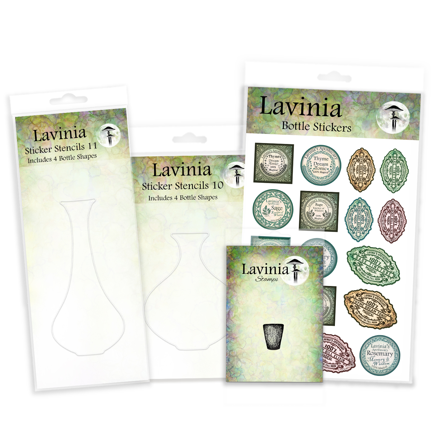 These 2 SETS of fabulous new Sticker Stencils have 4 small bottle stencils in each set. Perfect for smaller cards, like DL and A6.